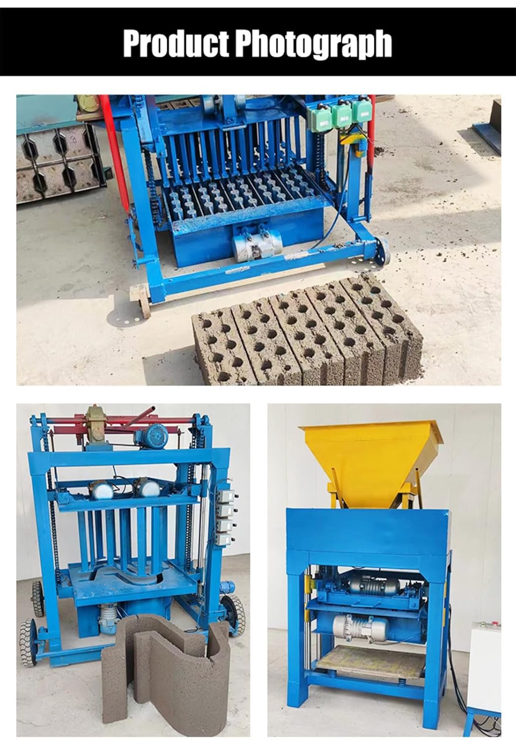 Product description Product Name: Semi-automatic Brick Making Machine Condition: New Key Selling Points: Easy to Operate Mold type: Hollow Brick,Bormal Brick, etc. Molding cycle: 35s Equipped with power: 4.8kw Class is produced(block): 240*53*115mm 15000 pieces Plate size: 850x550x30mm Overall size: Length 1250* width 1600* height 1550mm Weight: 640kg Number of operators: 2-3 Application: Buliding Construction Raw material: Cement Warranty: 1 year Core Components: Engine, Motor, etc. Applicable Industries: Building Material Shops, Construction works , Home Use, Manufacturing Plant After-sales Service Provided: Online Support Machinery Test Report:Provided Video outgoing-inspection:Provided Manufacturer Contact Information +86 150 3836 1505